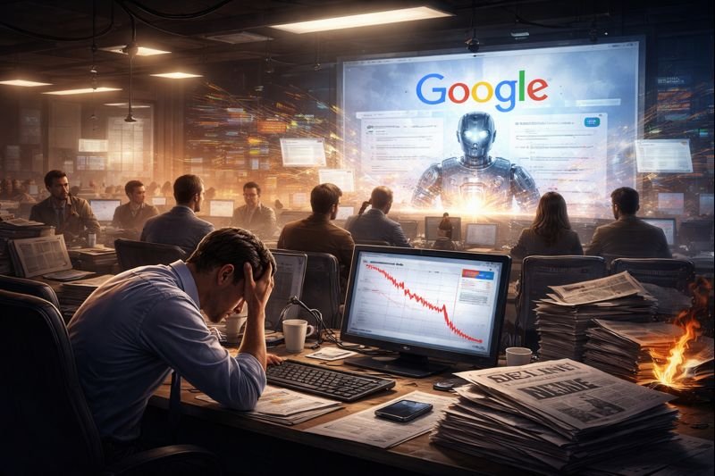 As Google search traffic collapses under AI-driven results, news publishers face an existential crisis, exposing years of platform dependence and forcing journalism to rebuild direct relationships with readers.